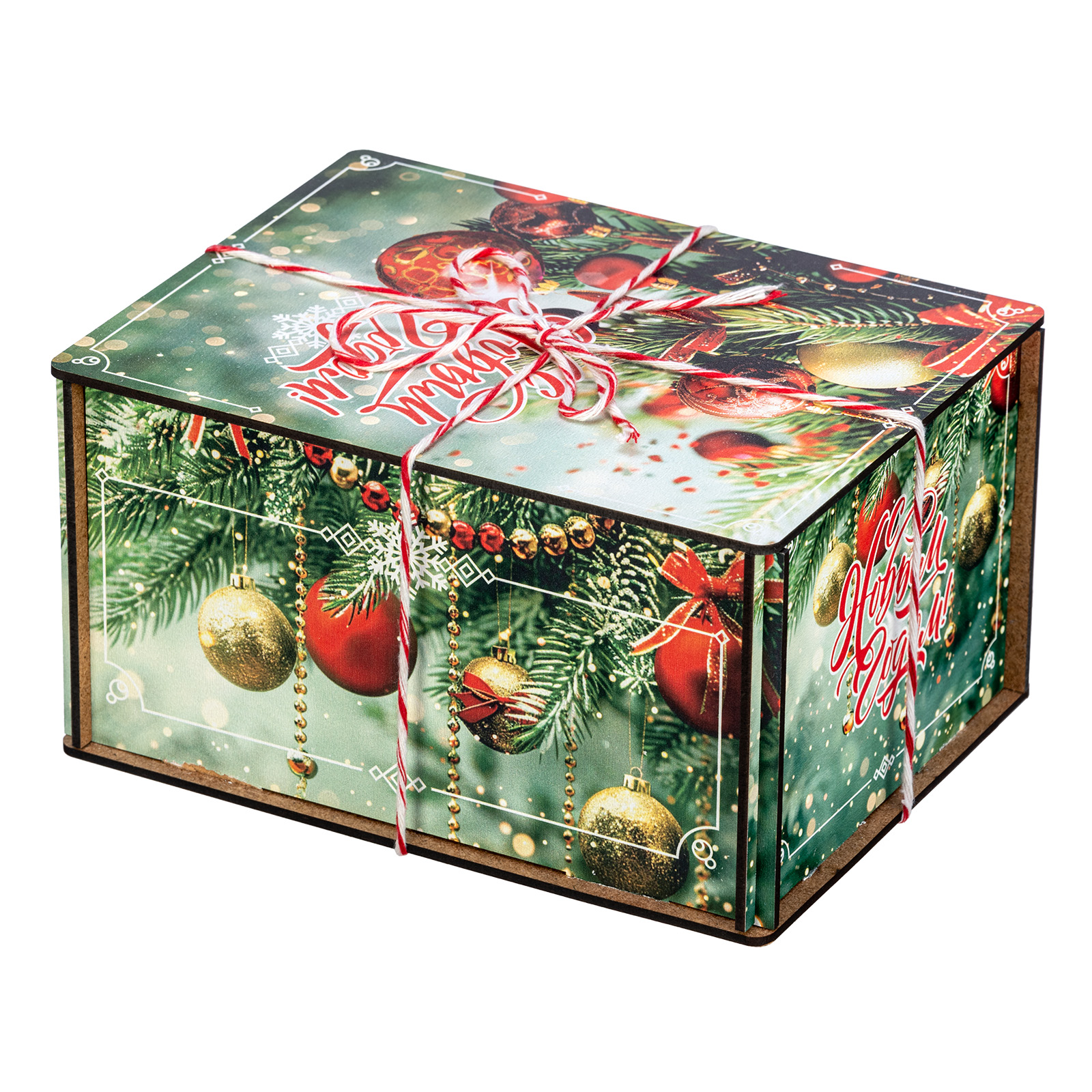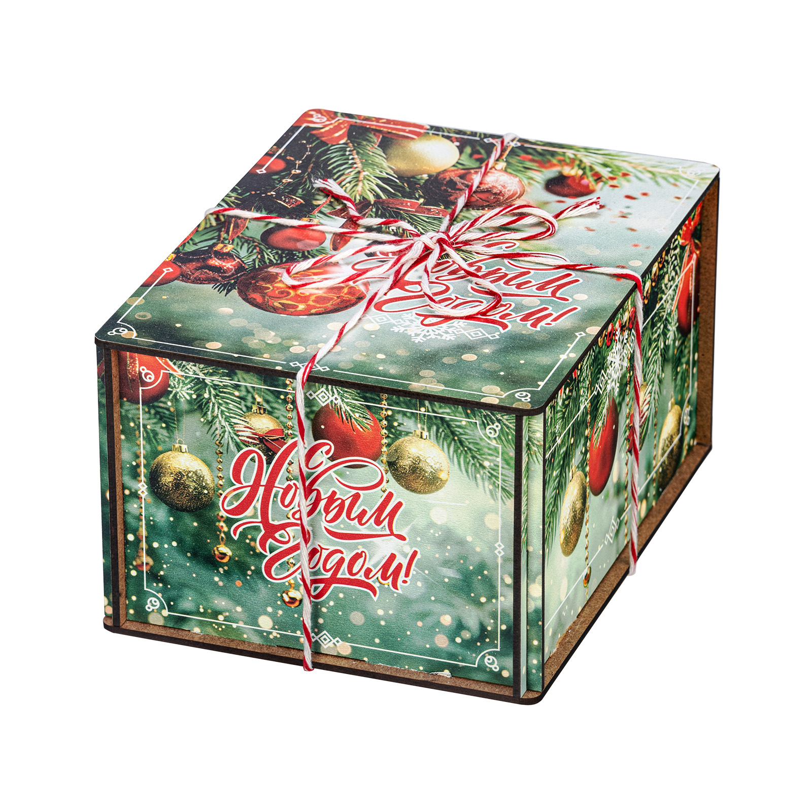 Яркая привлекательная упаковка и разнообразное вкусное наполнение - именно так можно описать этот подарочный набор. Килограмм самых разнообразных сладких угощений от ведущих кондитерских фабрик бережно упакован в  яркую деревянную коробочку, пышно украшенную рисунком роскошной еловой ветки. Сверху подарок перетянут яркой ручкой-шнурком, которая добавляет еще больше торжественности этому набору. Такой подарок прекрасно подойдет для поздравления сластены любого возраста: его можно смело выбрать как дня новогоднего праздника в детском учреждении, так и для корпоратива в крупной компании - восторженные отзывы гарантированы.